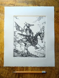 This plate was inked and wiped by hand, then printed using a hand cranked etching press which means that each print is unique and will have slight variances in plate tone and line intensity.